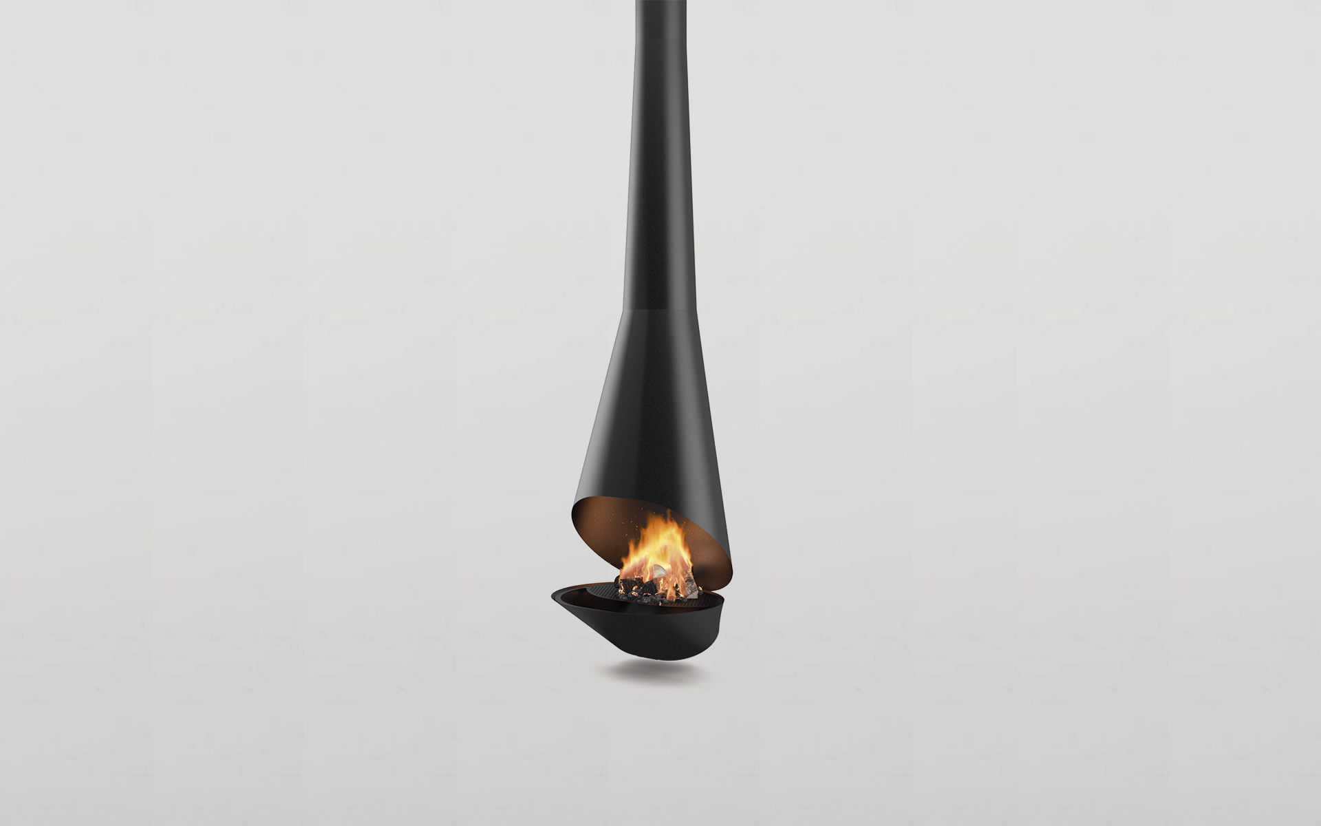 the fire is visible from every angle. The shape of the chimney is compact; it